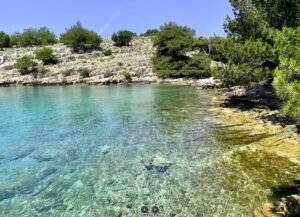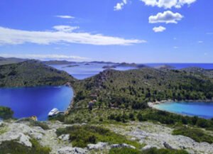 Cliffs, salt lake, and calm bays — often combined with Kornati tours.